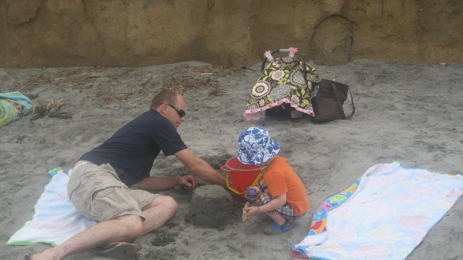 | Building the sand castle. Brooklyn sleeping in the background. |